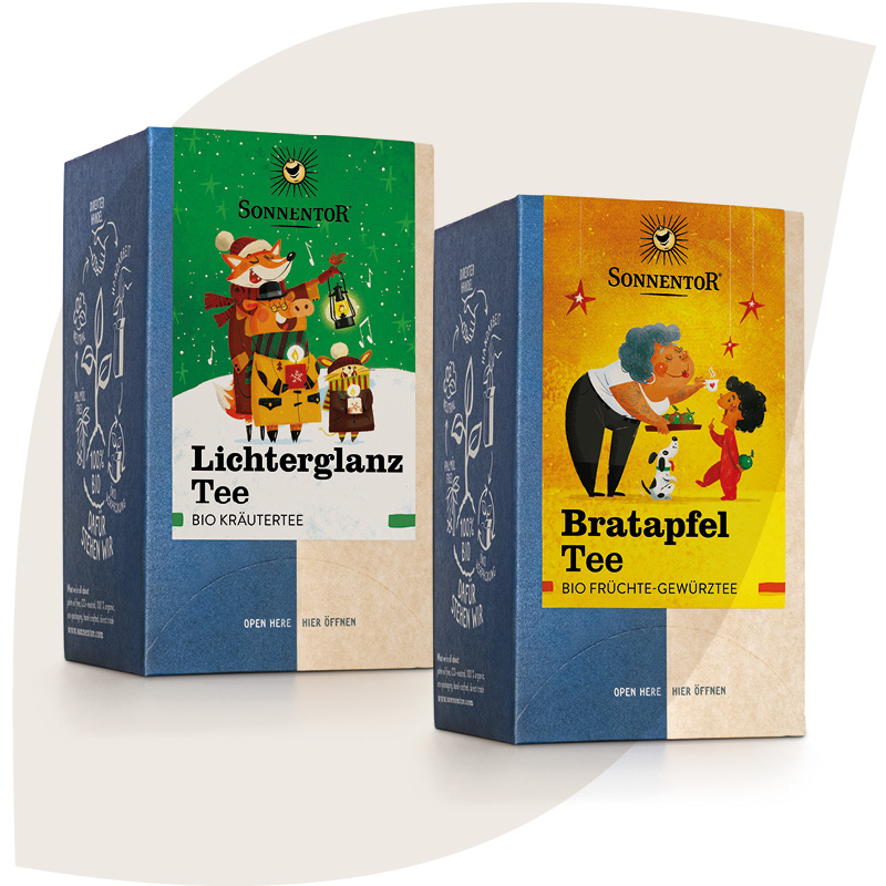 Eine Tasse Tee gehört zur Vorweihnachtszeit einfach dazu. Entspannen Sie im Advent mit einem aromatischen Heißgetränk und der kuschligen Decke auf dem Sofa. Die hochwertigen Bio-Tees von Sonnentor bringen Ihnen Weihnachten jeden Tag genussvoll etwas näher.